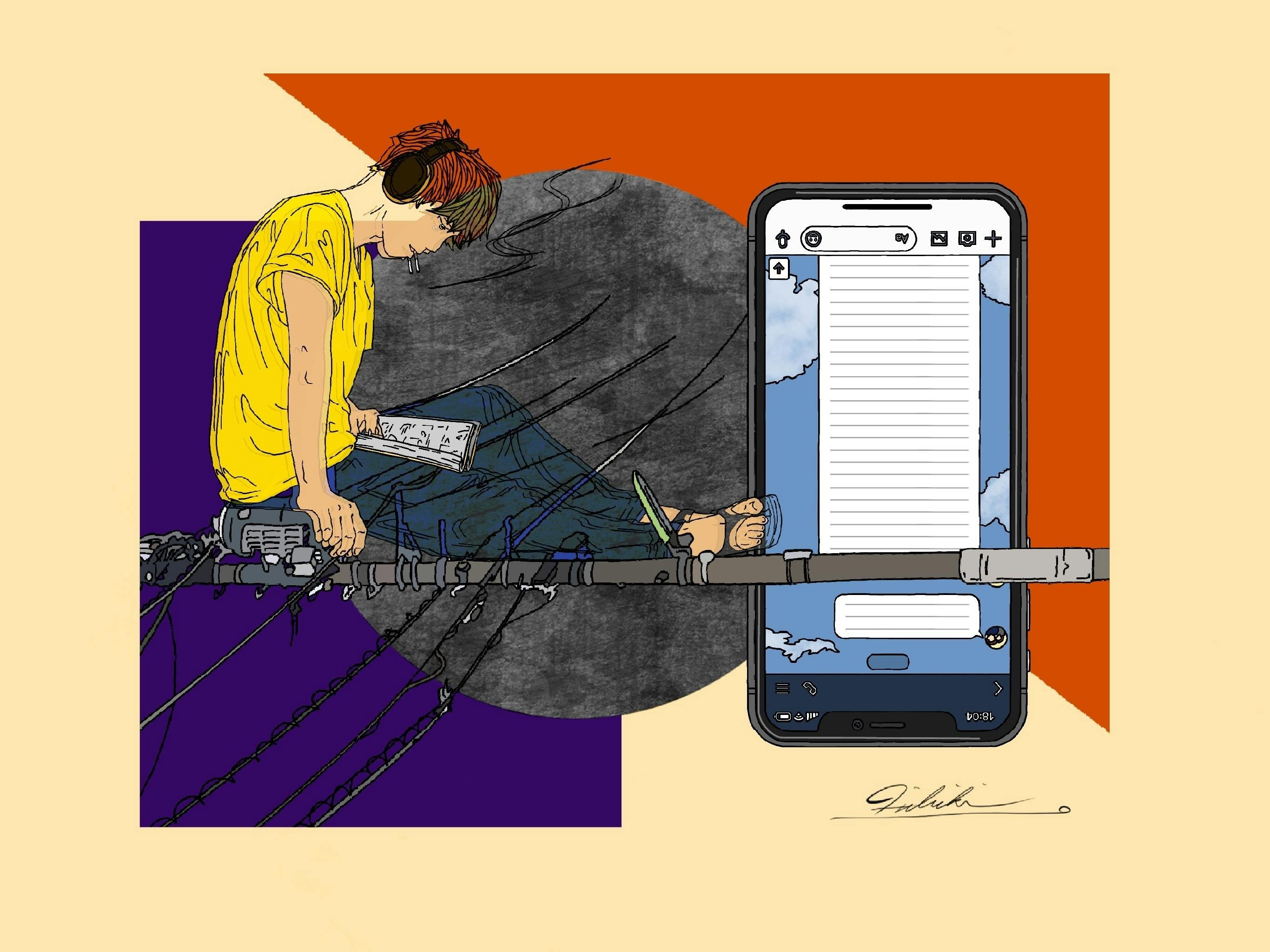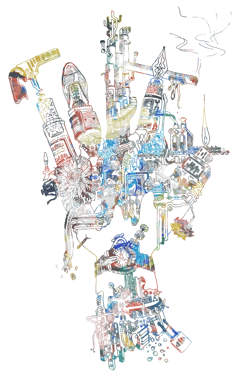 hibiki matsumoto処女作。タイトルは男性の手。ボールペンで手描きしたものに、色をつけました。