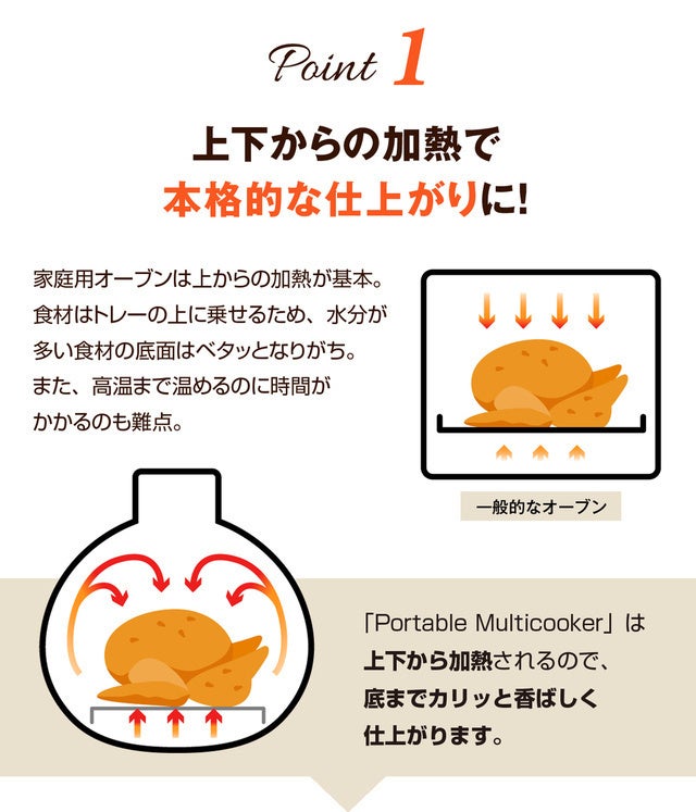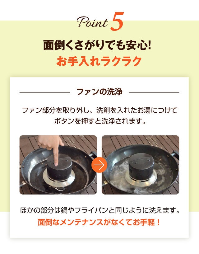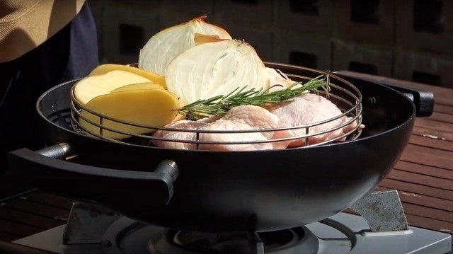 ②焼く・揚げる・燻す・蒸す・炒める1台5役!電源不要オーブン!
