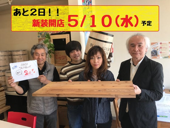 2017/04/12 18:56こんばんは斉藤です!今日は設計士さん、内装工事業者さんと最終の打ち合わせをしました! 経験豊富で、ナイスミドルな建築士石井さんと、木材工事ならお任せの田井さん、名コンピの温かいホストで、和やかに話し合いができました。 天然無垢材(杉)を贅沢に使った、木目優しい癒しの店内に・・地域の憩いの場になってくれたらうれしいです! そして・・目玉は、真ん中にコーヒー樽を使ったベンチができます!(商店街のお買いものに疲れたら、どうぞおくつろぎください!) あとは・・店先でコーヒー焙煎のデモンストレーションをすることもできる店頭イベントスペースも完備!! 設計図がこれです! わかりにくですが、店内全面に無垢材の飾り棚ができます。今の2~3倍のスペースになるので、単純に商品点数も2~3倍!(当たり前か・・) 棚の感じはこんな雰囲気!う~ん、やっぱり天然木材は癒されますね。 というわけで、4月下旬から工事に入ってもらい 5月10日(水) リニューアルオープン(予定)日にしました!!! 準備ができればですが・・ そんなこんなで、あと2日!!!! なんとか、なんとか!!!!!!!!!!!!!!!!!!!!! もっと見る