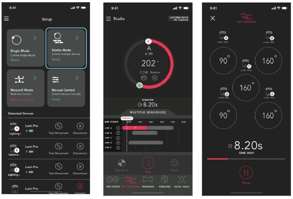 最大で5台の「LUMI Mark-Ⅰ」を連動し、多彩な写真や映像製作が可能。多角的な自分撮影をいつでもどこでも簡単に自分一人で実現!