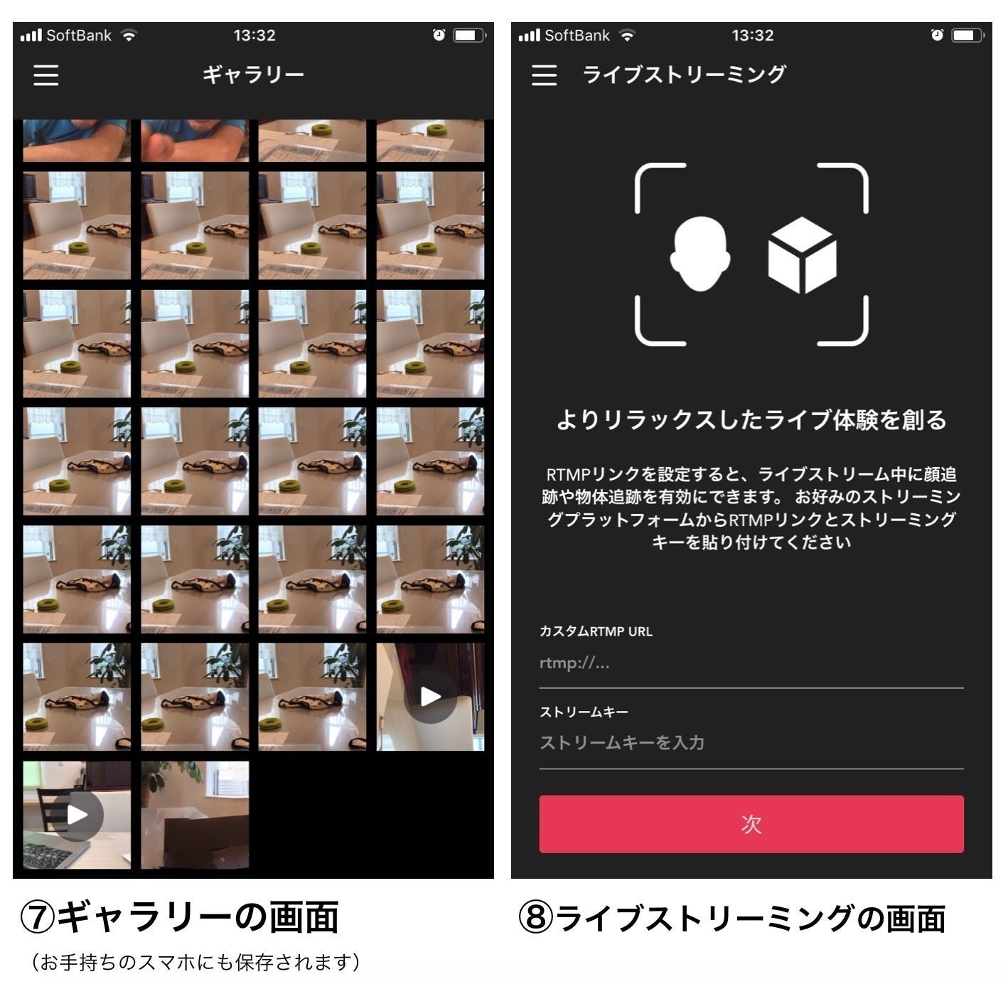 アプリから顔や物体を指定してトラッキングすることができるため、ライブ・料理・セミナー・クラフト・DJ・やってみた、など自分の姿をまるで専属カメラマンがいるように撮影ができます。