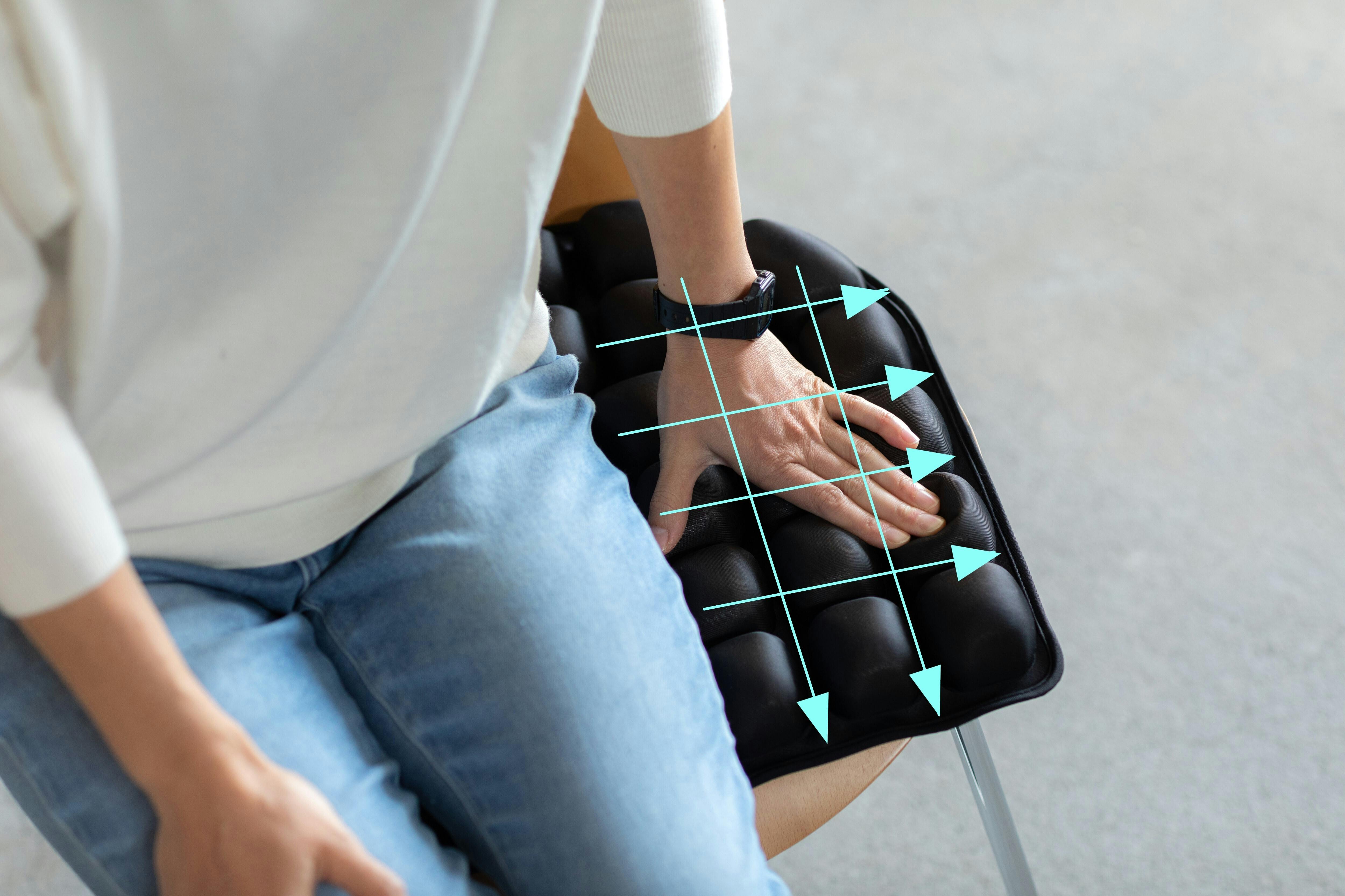 隣接するセルとセルは小さな管でつながっているため、座ったときに空気がクッション全体に循環し、それぞれのセルがからだにそった適切な形に移行します。