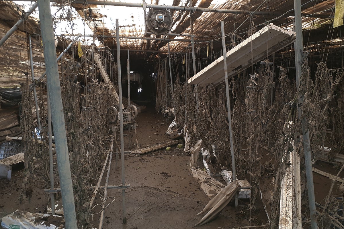 冷蔵庫内には泥をかぶったイチゴやトマトが山のようになっており、泥で埋まったハウスを見て途方に暮れるばかりでした。