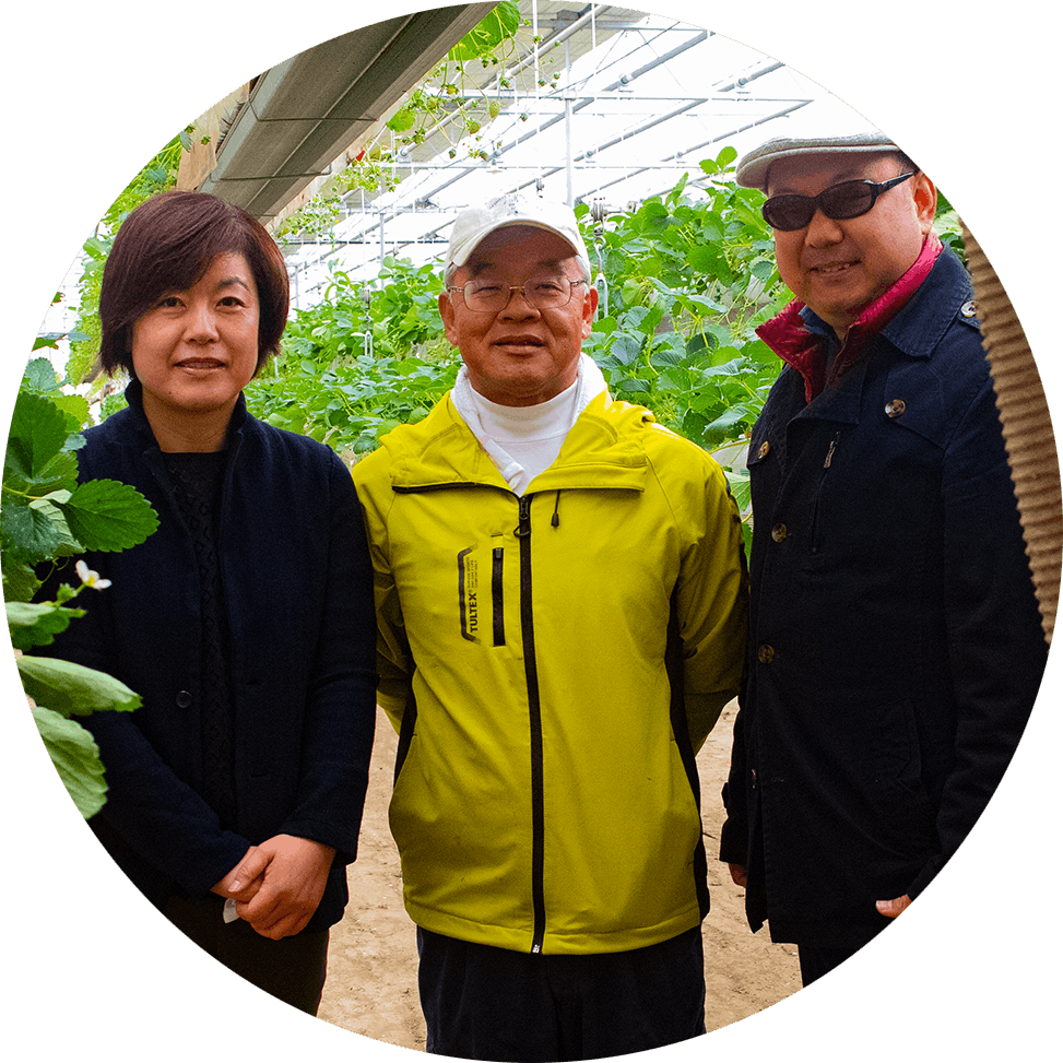左:担当 福島 中央:長野ベリーファーム 岡田社長 右: Webクリエイター トータル山本