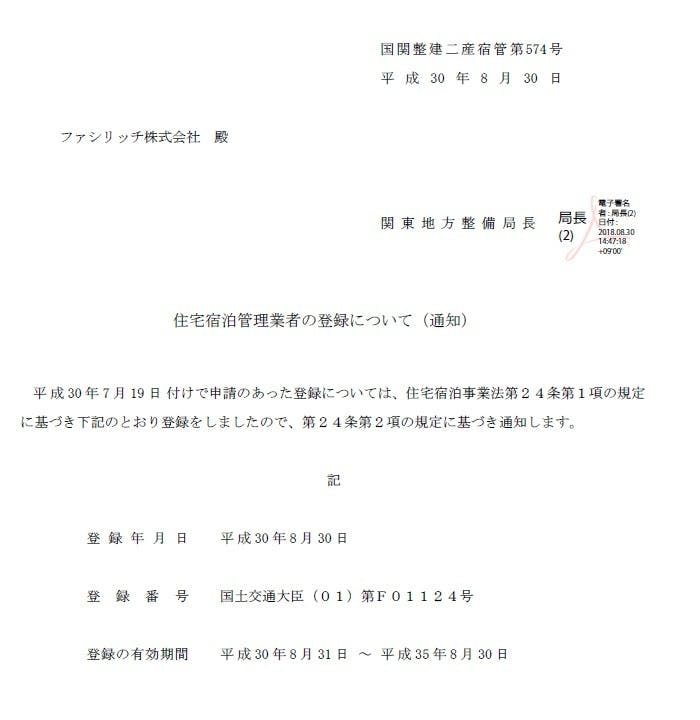 そして、2018年に民泊運営管理に必要な資格「住宅宿泊管理業者」の登録申請を認めていただきました。柏市での登録承認第1号です。