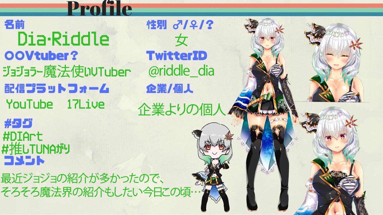 ジョジョラー魔法使い2.5次元VTuberことDIA・Riddleです。