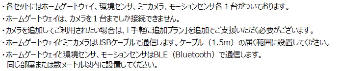 A5.発送する製品に同梱するセットアップガイドをご覧いただければ簡単にご利用いただけます。一方で、IoT機器の設置・設定が上手くできるか不安な方や、手間がかかるとご心配される方には無料の訪問設置サポートを準備しておりますので気軽にご活用ください。