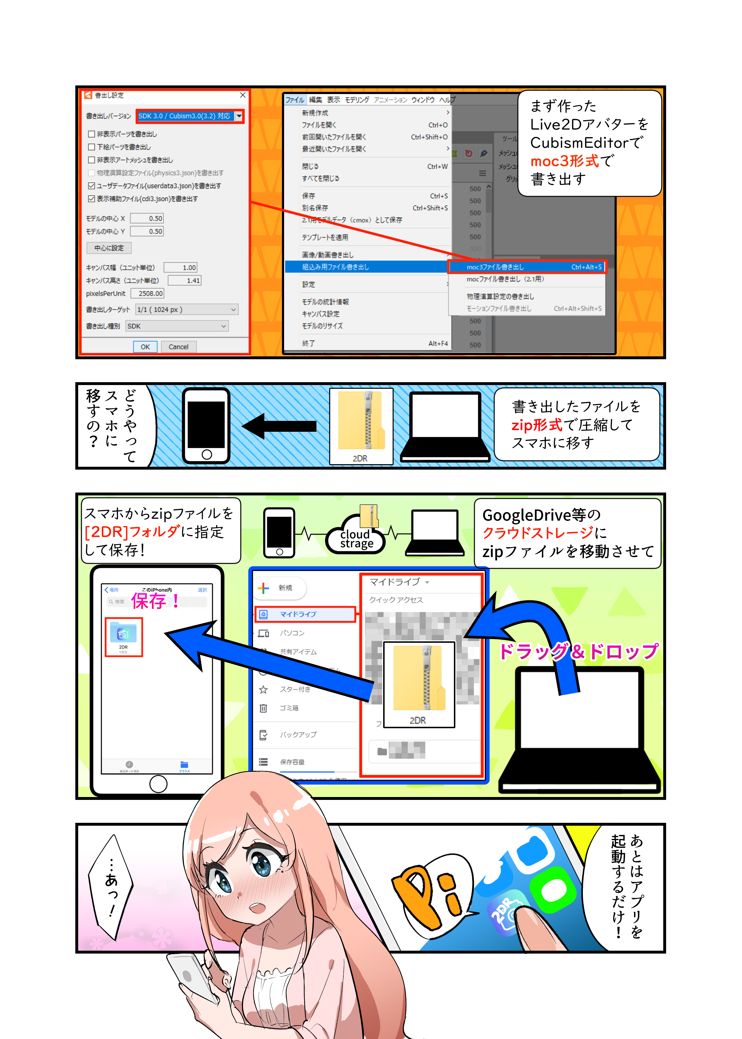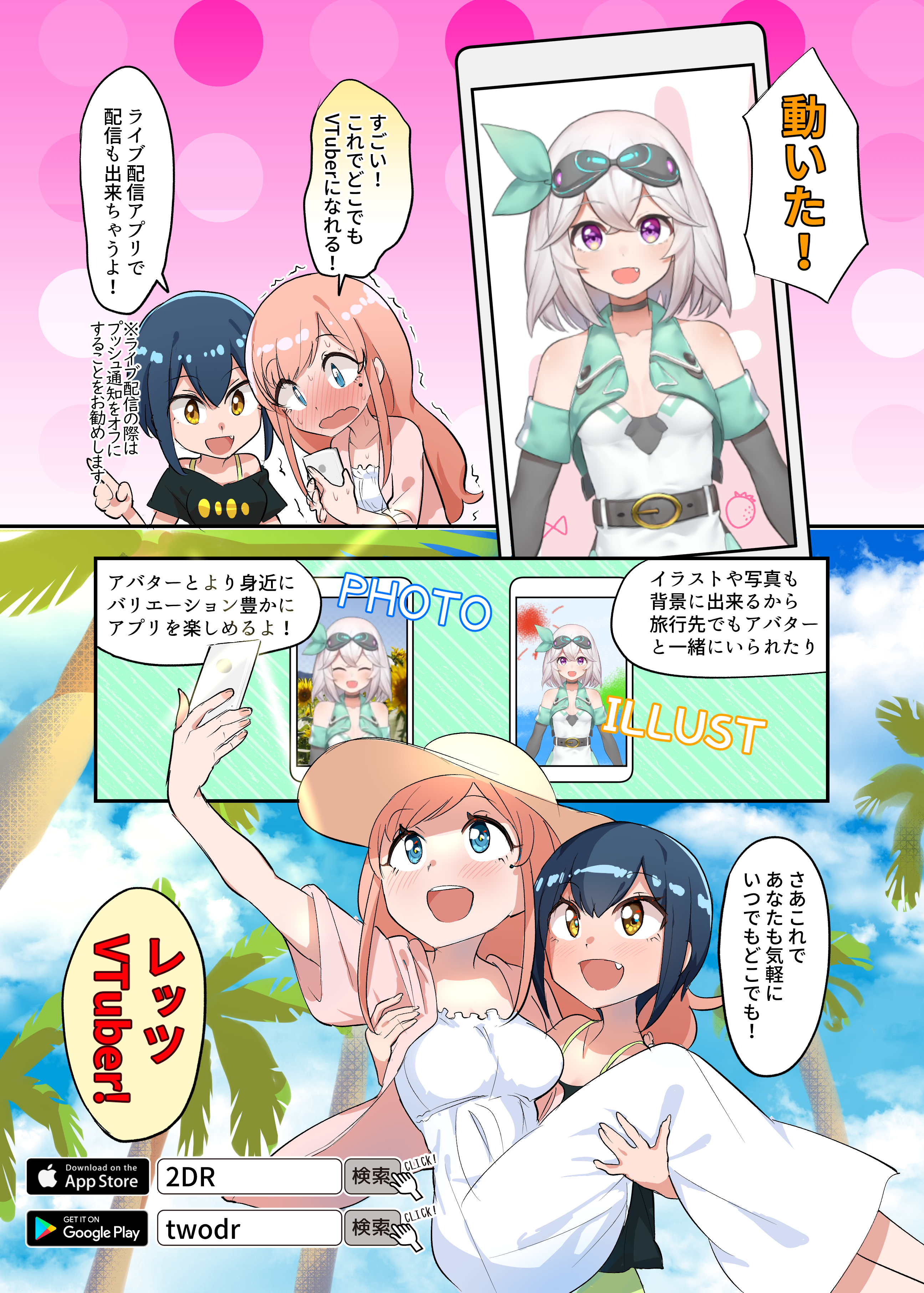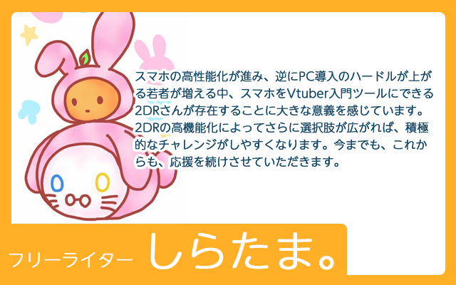 この2DRは、スマホでオリジナルのLive2DモデルやVRMモデルが顔認識によって動くことを目的としたアプリケーションです。