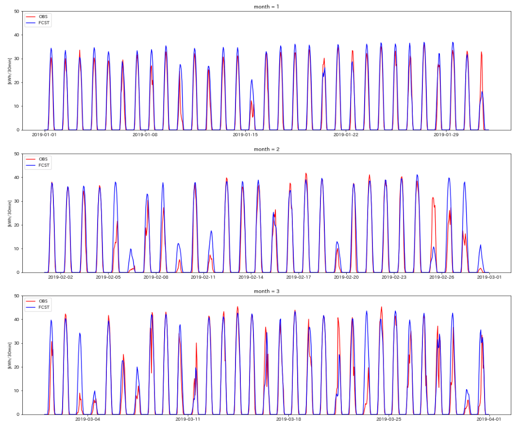 今回はひとつの発電所に対する予測でしたが、複数の発電所群やバランシンググループに対しての予測になると均し効果が効くため、更に良いパフォーマンスの予測が期待できます。