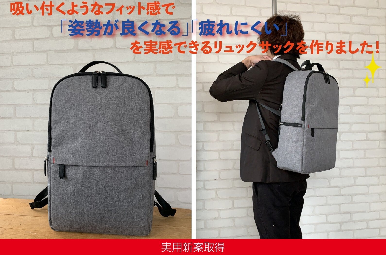 皆様こんにちは!このたび、吸い付くようなフィット感で「姿勢がよくなる」「疲れにくい」を実感できる新感覚のリュックサックを開発したosakaARTkaban.studioです。こちらのリュックサックは「特殊構造のベルト仕様」の部分で実用新案を取得しております。この仕様により、これまで「ホールド感」や「ズレ防止」のために必要だった「チェストベルト」が不要になります!正面からの見た目はこれまでのリュックサックなのに、フィット感はチェストベルト以上?!の効果が期待できます^^!初のプロジェクト、自信作に仕上がっております。是非、皆様のご支援をお願い申し上げます。