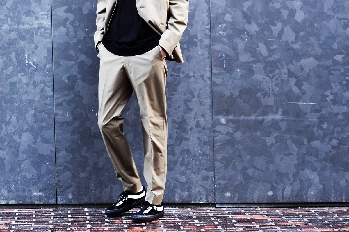 機能素材や付属使いによって現代シーンにおけるビジネスカジュアルにファッション性と機能性を併せ持つ