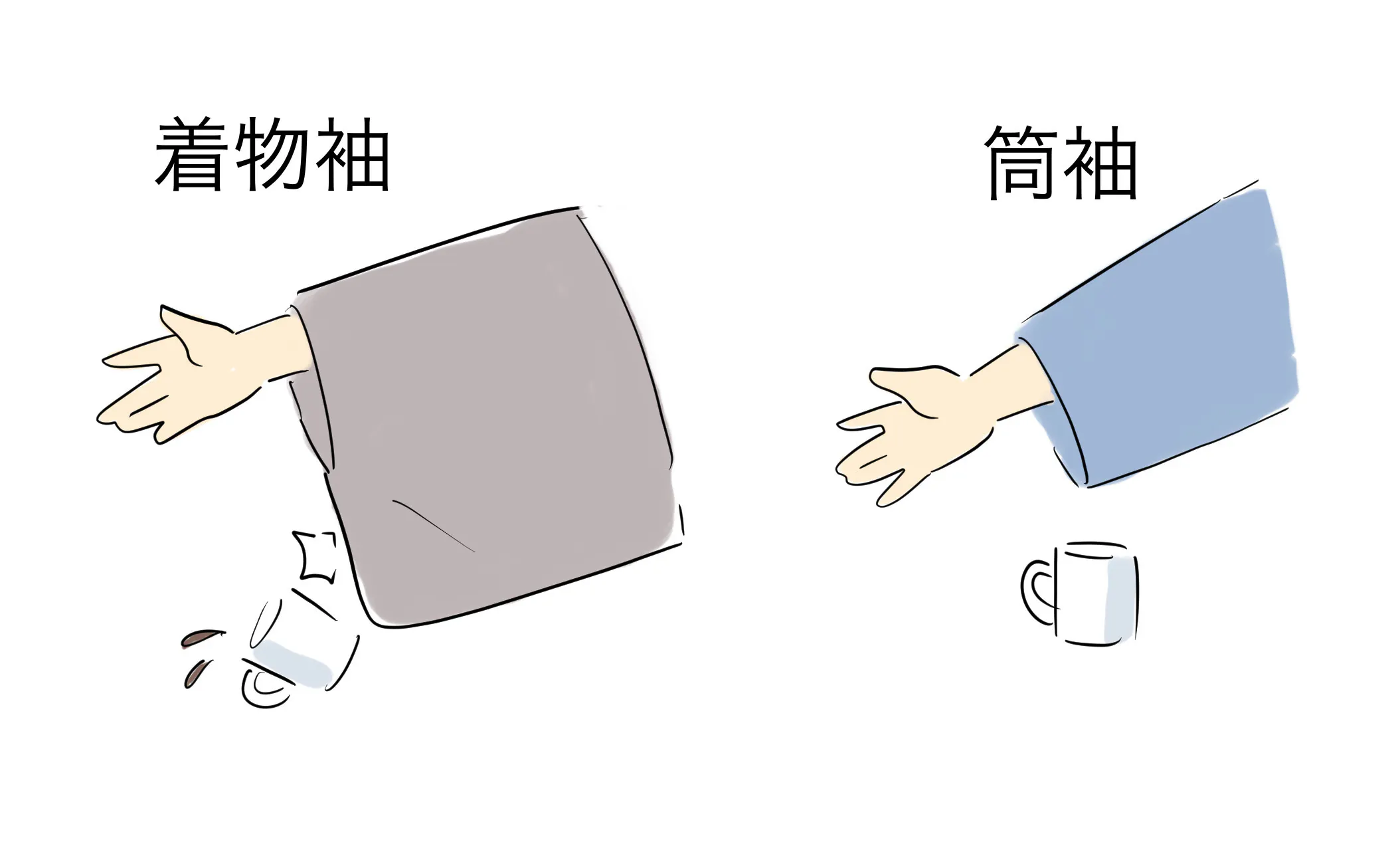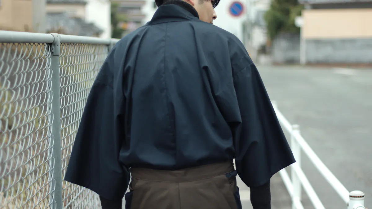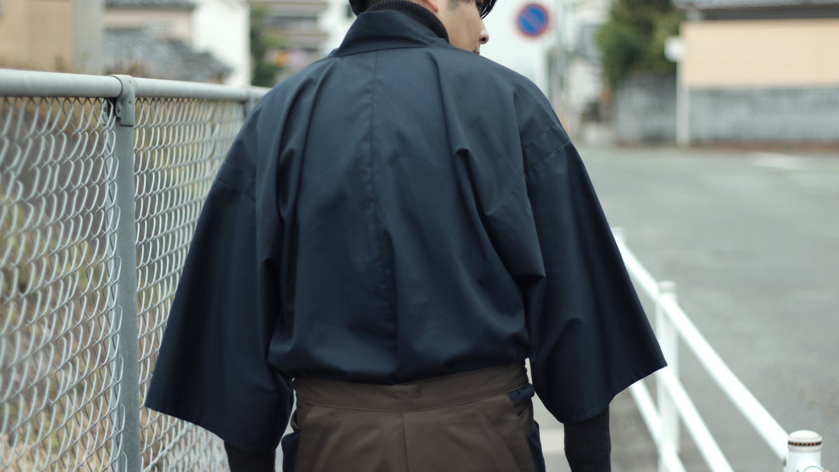 袴に入れてもかさばらない短めの丈になっており、日常生活で動きやすいように着物袖ではなく筒袖仕様になっています。