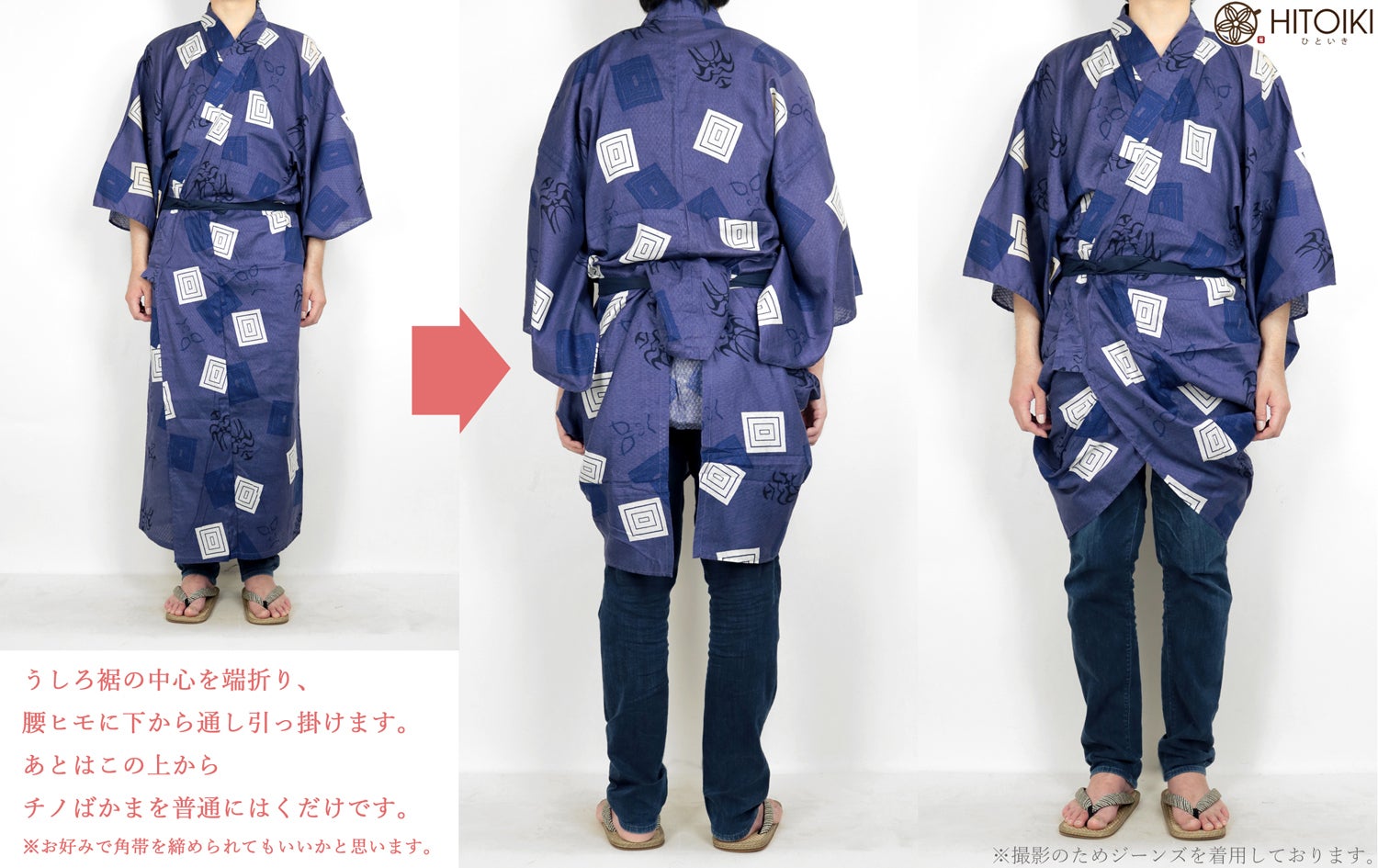 A.単衣の着物や浴衣など薄手の生地の着物なら、若干太もも付近が膨らみますがご着用いただけます