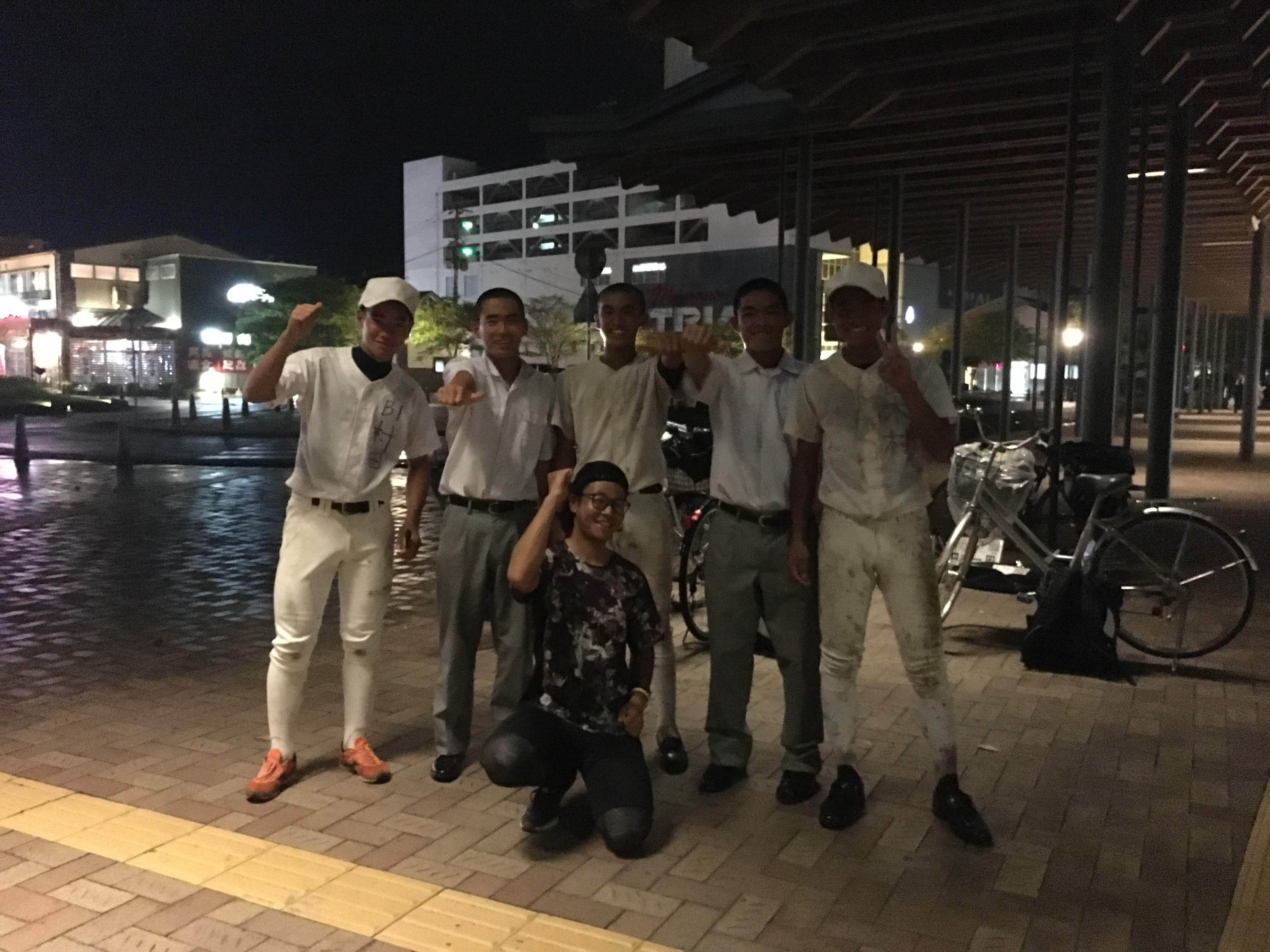 日本一周154日目 宮崎県日向市駅前路上ライブ。地元の高校生と。