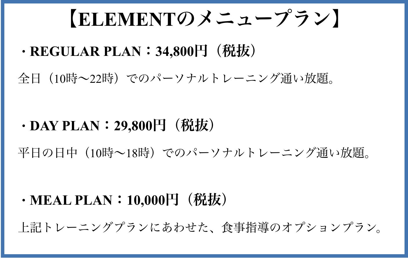 ・ELEMENT 2ヶ月限定モニタープラン 30,000円