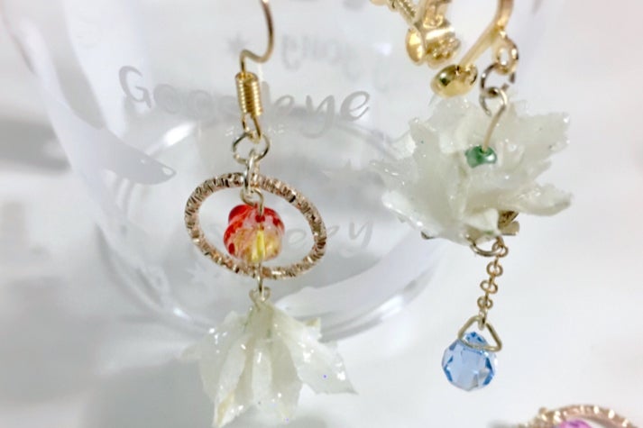 また、Kazahanaがアクセサリー制作用に生花を購入し、自宅で作成したドライフラワーの