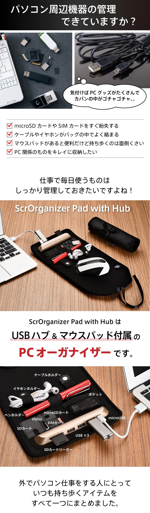 ※ScrOrganizer PadとScrOrganizerにはハブは付属しません。