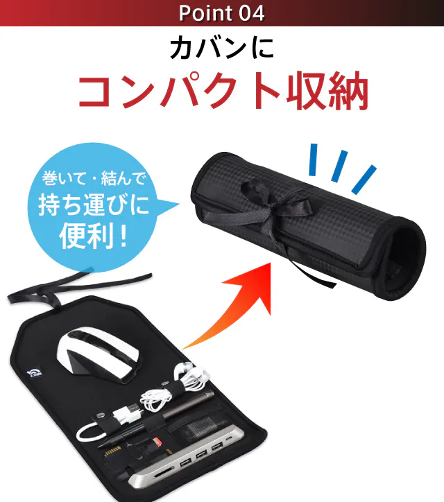 A. 本商品にマウスは付属されません。本体に加えてPC本体へ接続するUSBケーブルとType-Cへの変換アダプタが同梱されております。