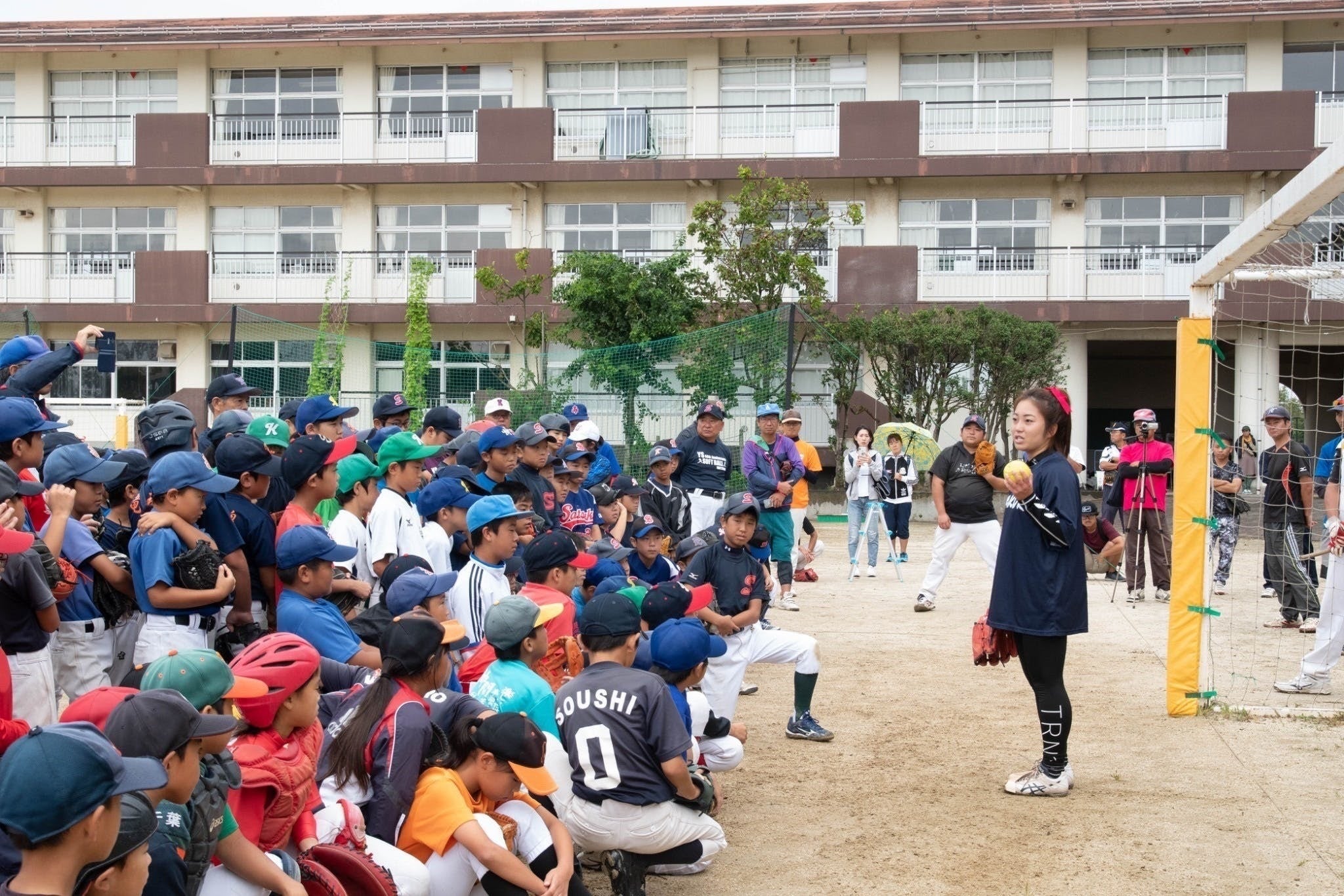こちらは、千葉県松戸市で100人の子どもたちにピッチング教室のレクチャーを行っている様子です。