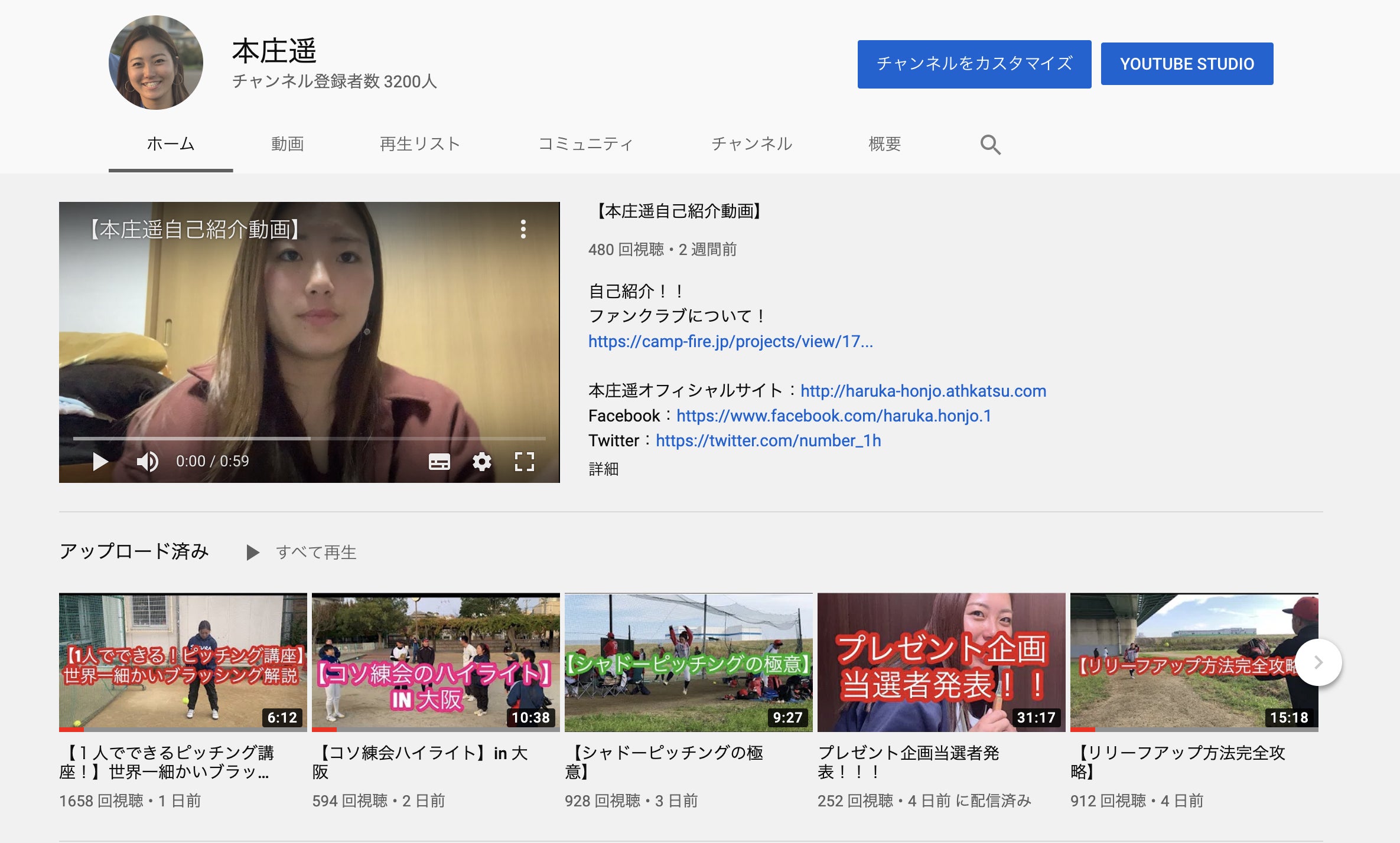 現在3,300人以上に登るチャンネル登録数を誇り、女子ソフトボールユーチューバーの中ではダントツの一位を獲得。