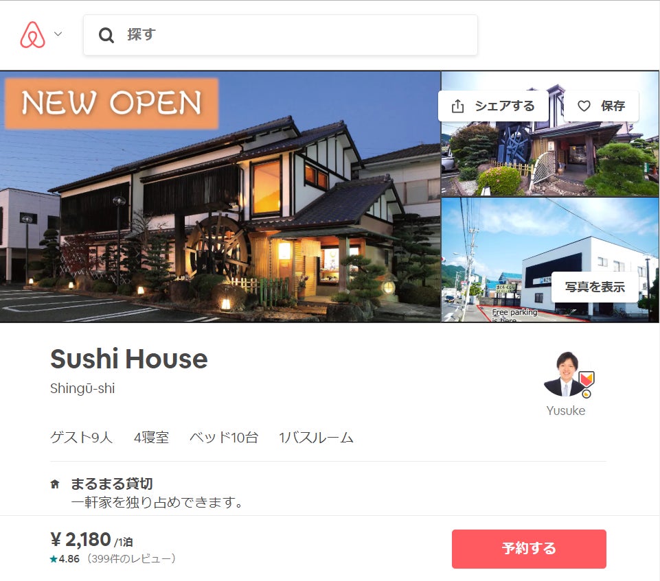 僕の生徒を例に出すと、和歌山県新宮市の前田君、ゲストハウスと実家の寿司屋を組み合わせた「スシハウス」は、大手民泊サイト「Airbnb」が発表した「おもてなし順位」で日本一に輝いた和歌山県新宮市で、三重・奈良・和歌山県内最多レビュー数400件を得ながら、5点満点中4・87 へ、実質的な全国ナンバー1のゲストハウスで輝きました。