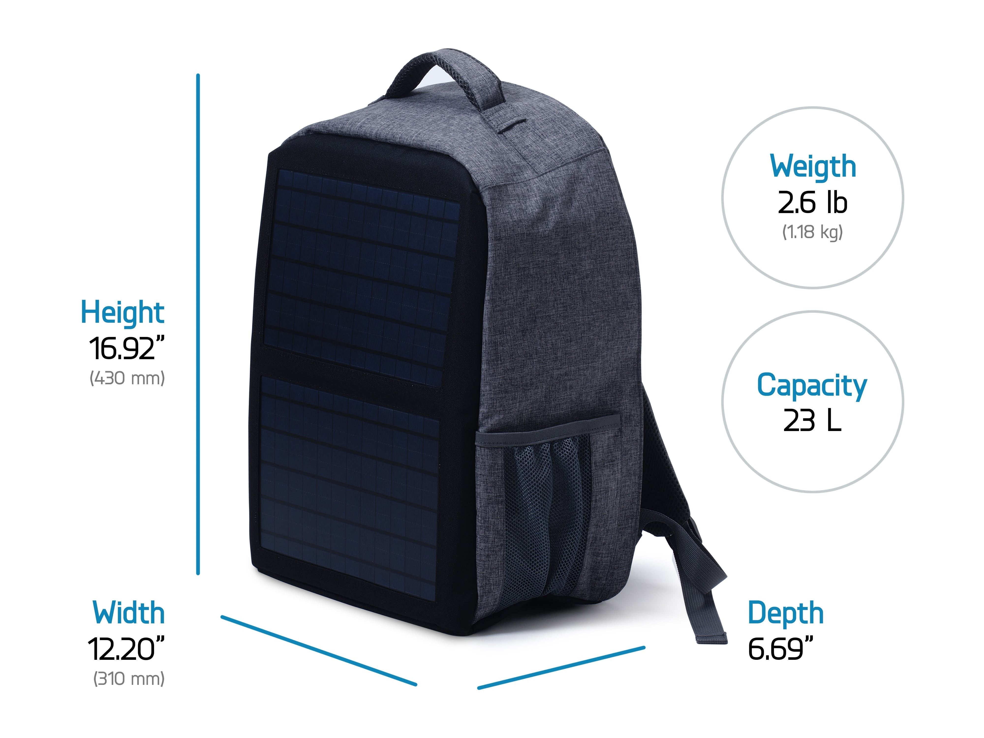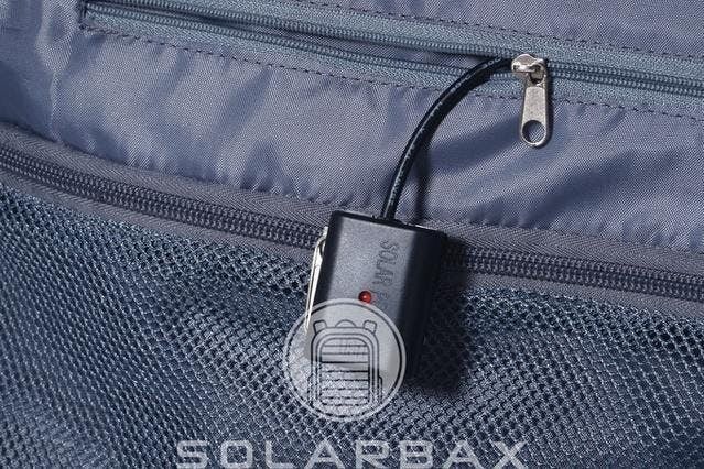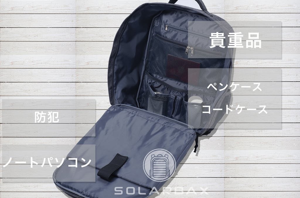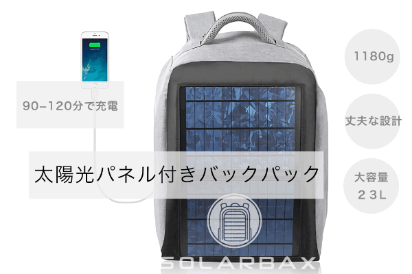 バックパックにソーラーパネルが搭載されています。