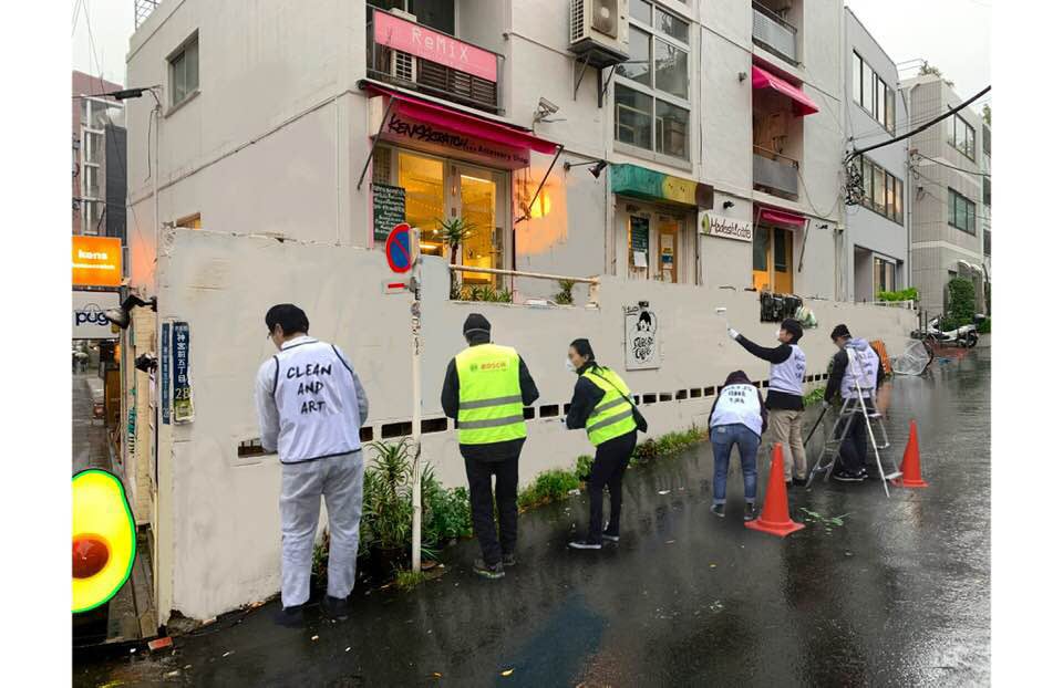 CLEAN&ART代表の傍嶋は、壁画アーティストとしても活動している中で、ストリートアートのカルチャーが根付く「渋谷」で、アートと落書きの境界線がどこにあるのかをずっと考えていました。アーティストとしての活動の傍ら、清掃美化活動を通じて地域の方々と多く関わる中で、落書きに困っている実情を伺い、消しても消しても繰り返されてしまう落書きの問題を民間の力で解決する為、2018年3月に代官山グリーンバードの有志4名で任意団体CLEAN&ARTを立ち上げたのが、この活動のはじまりです。