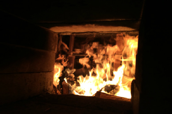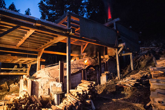 深夜、ごうごうと薪を燃やしていく窯、