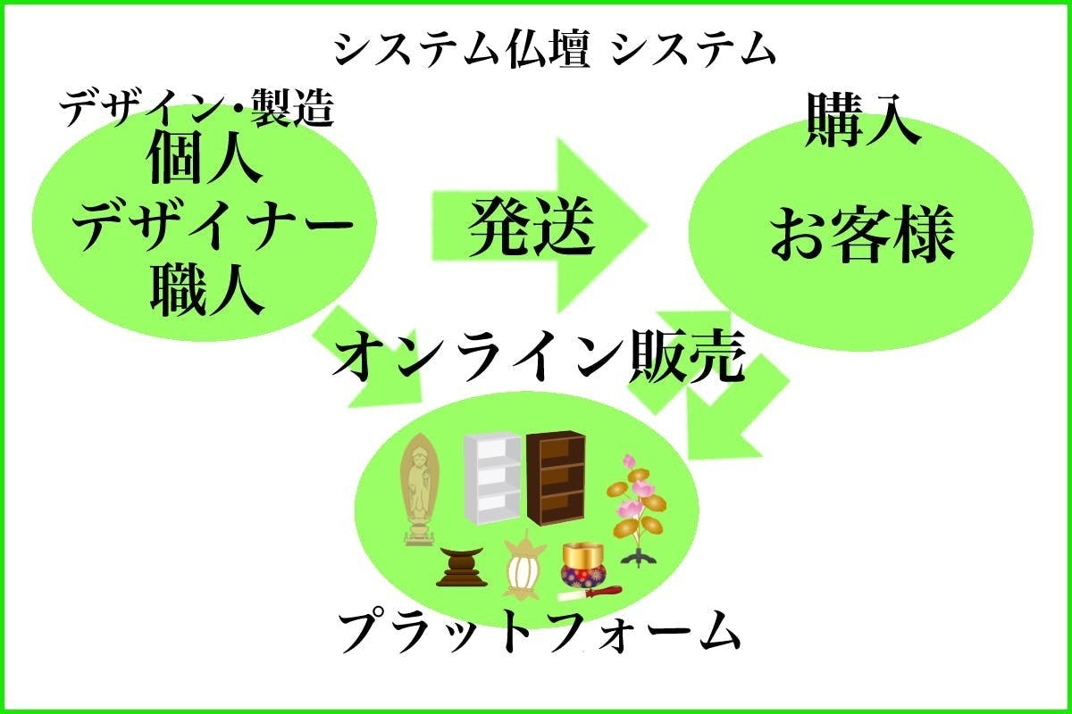 個々の方々(個人やデザイナー)に規定のサイズに合わせて、仏壇や仏具をデザイン、製作していただきます。(システム仏壇 仏具のオンライン上で販売していただきます)
