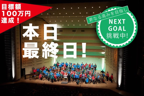 2020/01/31 05:44皆様の温かいご支援のお陰で、目標金額である100万円、そしてネクストゴールである150万円も達成する事が出来ました!本当にありがとうございます!お預かりした支援金はお約束通り、部員達があらゆる側面からステップアップする為に大事に使わせて頂き、皆様にその結果をご披露したいと思います。またネクストゴール達成のお約束であった、浜松近隣でのコンサートももちろん開催させていただきます。これからも私たち浜松聖星高等学校吹奏楽部はオーディエンスの皆様に感動していただける演奏を目指し、邁進して参ります。どうか引き続きの応援、宜しくお願い申し上げます。浜松聖星高等学校吹奏楽部部員 関係者一同 もっと見る