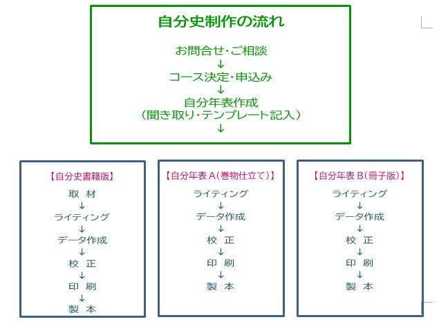 これまでも個人的に何度か「自分史」の制作という依頼をいただいたことがあります。ただいずれも「書くことが好きな方」からの依頼でしたので、ある程度ご自分で書かれたものを私が手直しする、という形だったのです。けれど「書けないけれど、自分の人生を振り返ってみたい」と思っている方、もしくは思っても「自分には無理」「頼むほどではない」「書いてもらったら高くつく」等の理由で諦めている方も多いはずなのです。