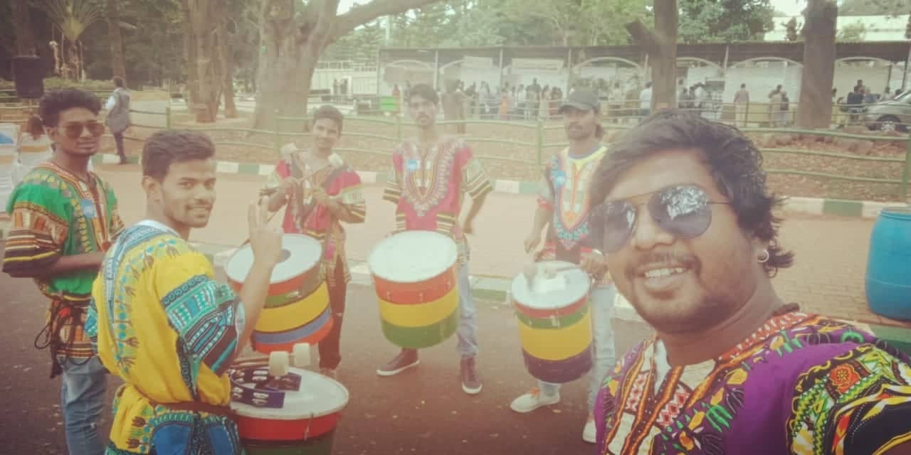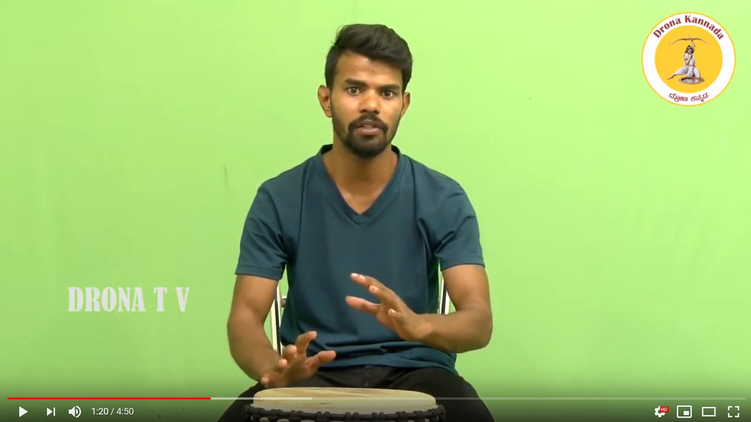 カンナダ語(バンガロールの公用語)の教育系Youtubeチャネルでジャンベ(西アフリカ起源の打楽器)の演奏方法を教えるVenkatesha
