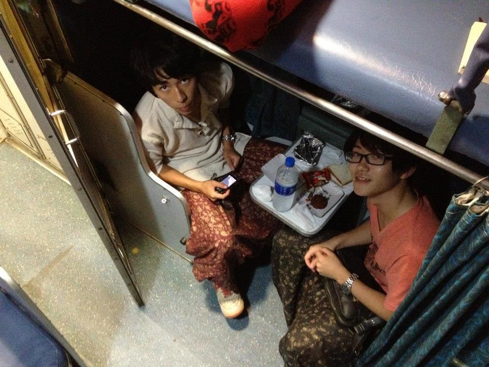 インドの寝台列車にて、左が園田、右が佐藤