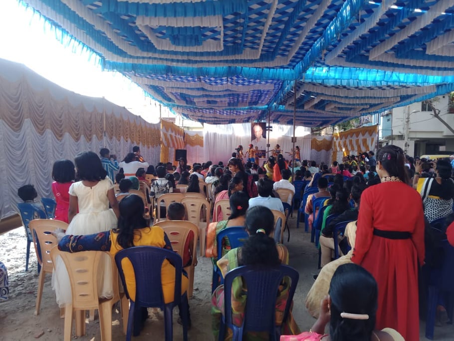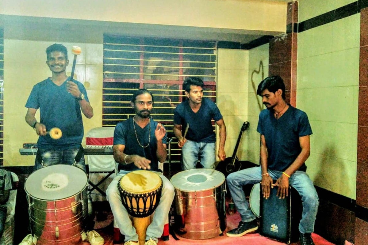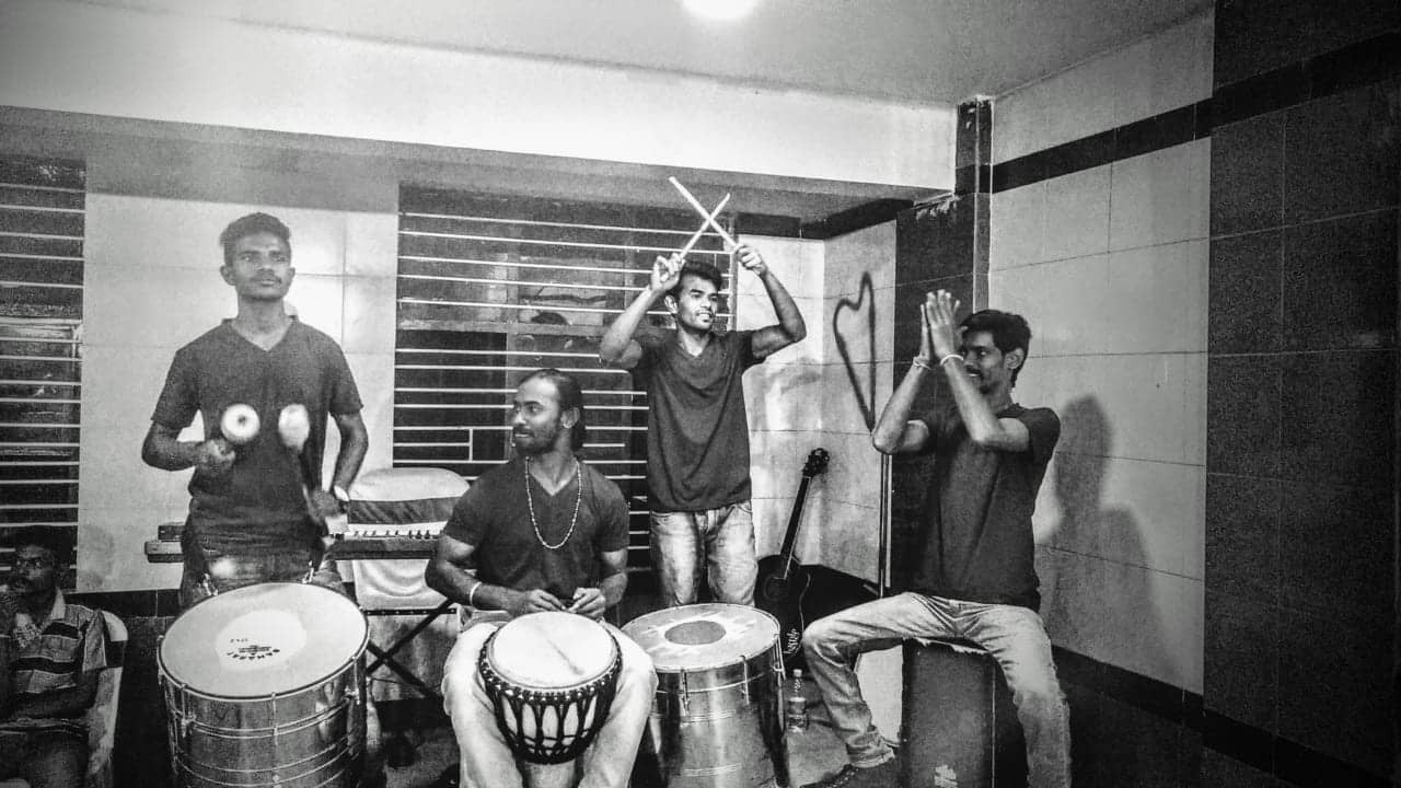 バンガロールのNGOにて演奏するPRAVADのメンバー