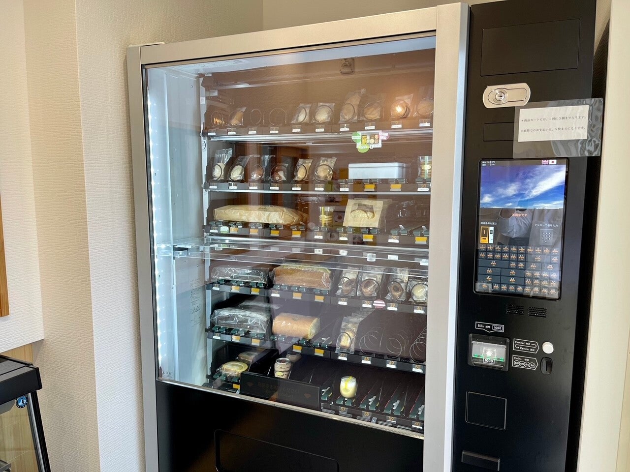 当店では出来立てが美味しいパンやスイーツを厳選した素材を使い焼きたて絞りたてで提供しております。店内では焼き菓子やパン、缶スイーツやプリンなどを自動販売機にて販売しております。