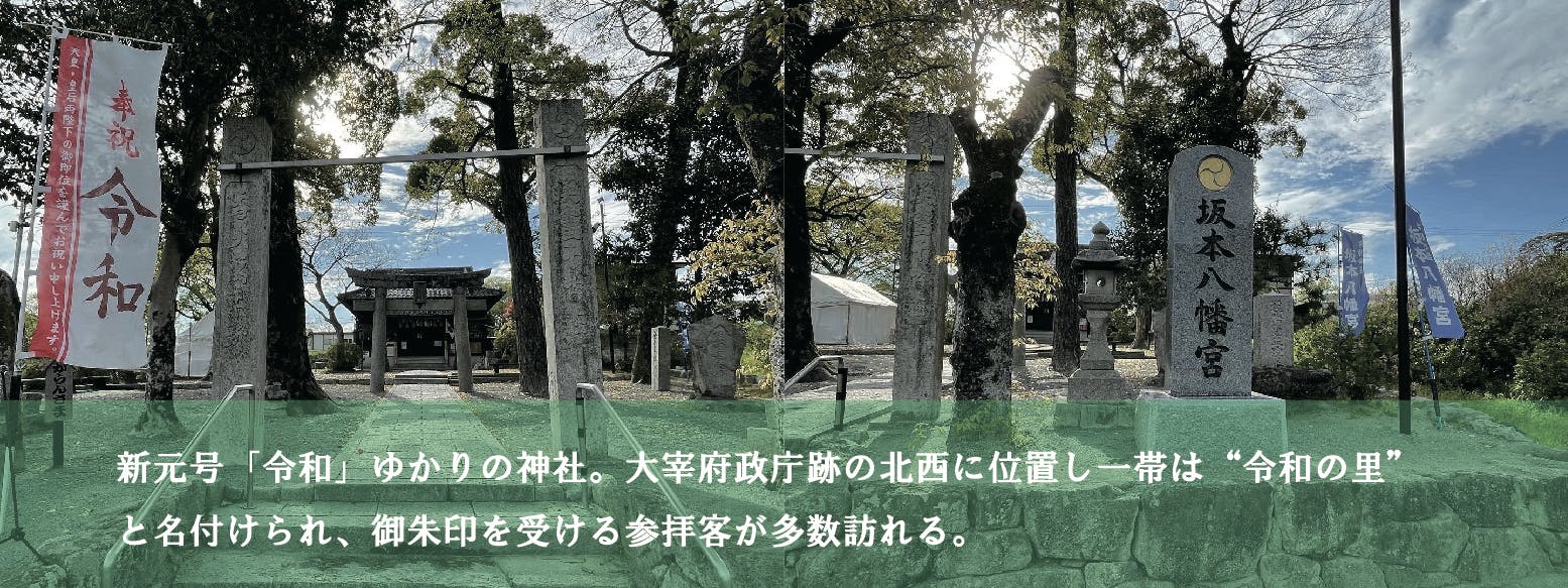 新元号令和のゆかりの地として坂本八幡宮が紹介されていた地区になります。