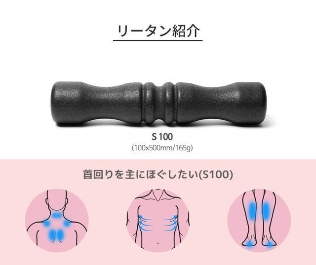 S100はこれらをサポートします:頚椎(首)指圧とCカーブの運動・胸椎(背中)指圧と運動・肋骨指圧と胸を広げる運動・ブリッジと足の裏を刺激・ふくらはぎと脛骨筋刺激。