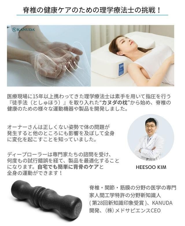 誤った姿勢や習慣で物理的な問題を訴える現代人にを助けようと研究に研究を重ねて作成した 徒手治療を応用した機能性枕を開発し、15年以上のキャリアを持つ 脊椎矯正と筋肉弛緩の専門家であり自宅でも姿勢矯正運動をケアするフォームローラーを通して脊椎と筋膜(筋肉や臓器など全身を包んでいる膜)を管理できるように開発されました。