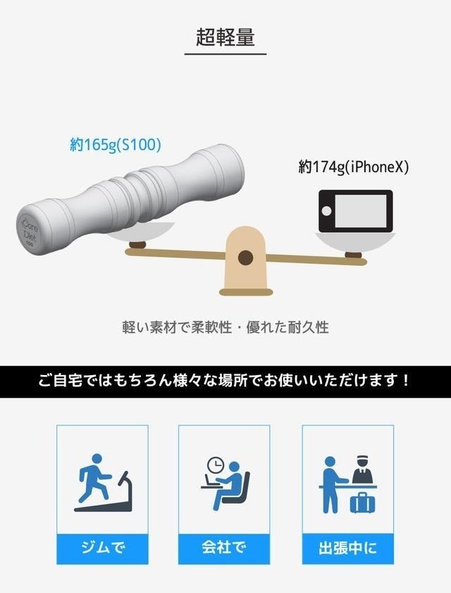 ディープローラの突起で筋膜や関節の深い刺激に固まっている筋肉をすばやくほぐして正しい体型の維持と身体のバランスをサポートします!