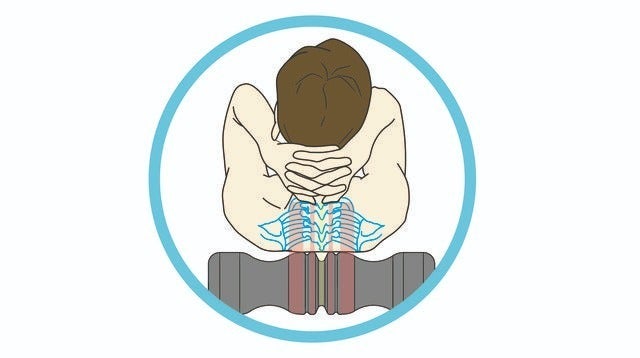 また、ディープローラーを首の上のところに1つ当て、もう一方の仙骨に向かって10〜15分程度指圧していただければ硬膜管がストレッチされ、その中で流れる脳脊髄液の流れを助けることができるので、血液の循環に補助的な助けを与えることができます。