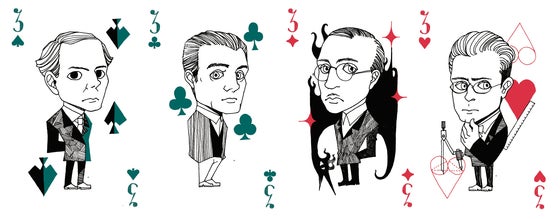 3の絵柄たち! 【スペード】バルトーク 【クローバー】ラヴェル 【ダイヤ】ストラビンスキー 【ハート】ウェーベルン ※数字の位置や、フォントなど、今後若干の微調整を加える可能性があります。