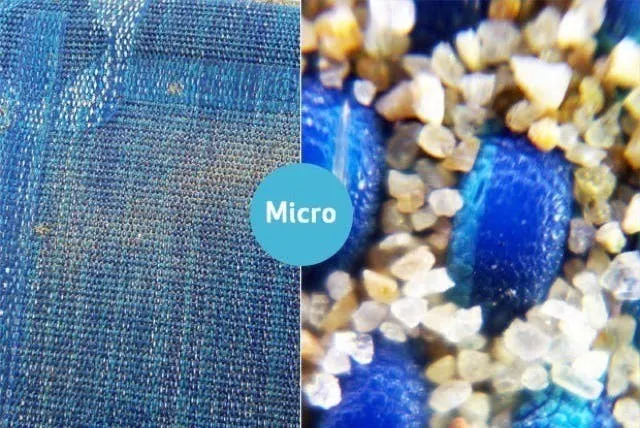 Micro(マイクロ)レンズで撮影した布内の砂(右)