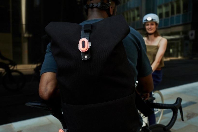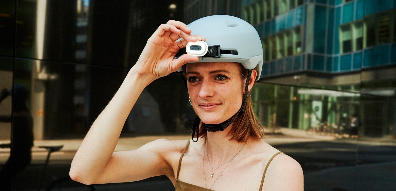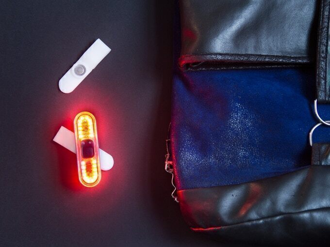 自転車本体だけでなく、バックやヘルメットにも装着可能。