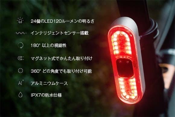 後方に取り付ける「リアBurner」は赤い光が後方を照らします。