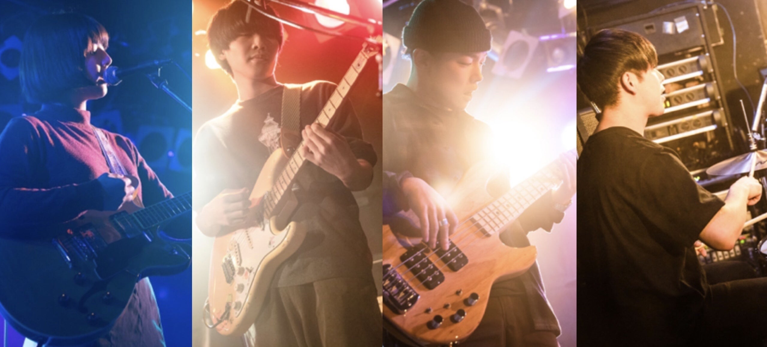 左からベイ佐藤(Vo/Gt)、まる(Gt)、てるた(Ba)、伊従修平(Drs)