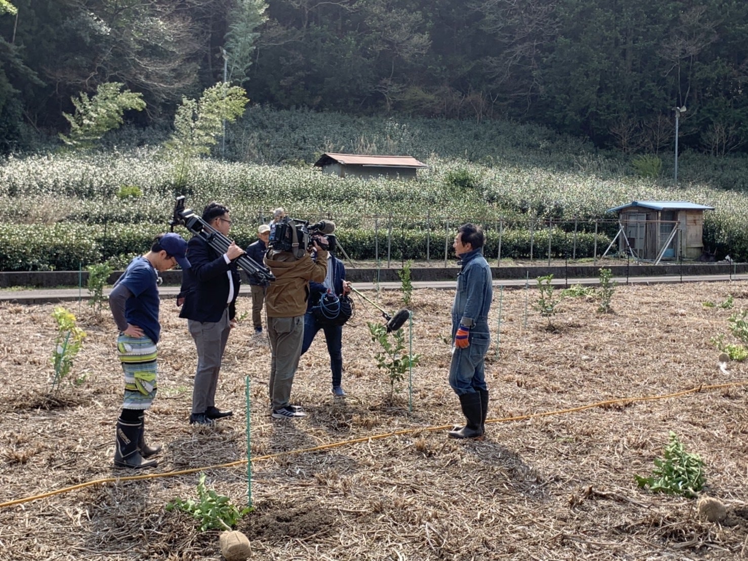 柚子の苗木を植える作業中の姿と共に取材を受け、住民の方々にもご協力いただきました。