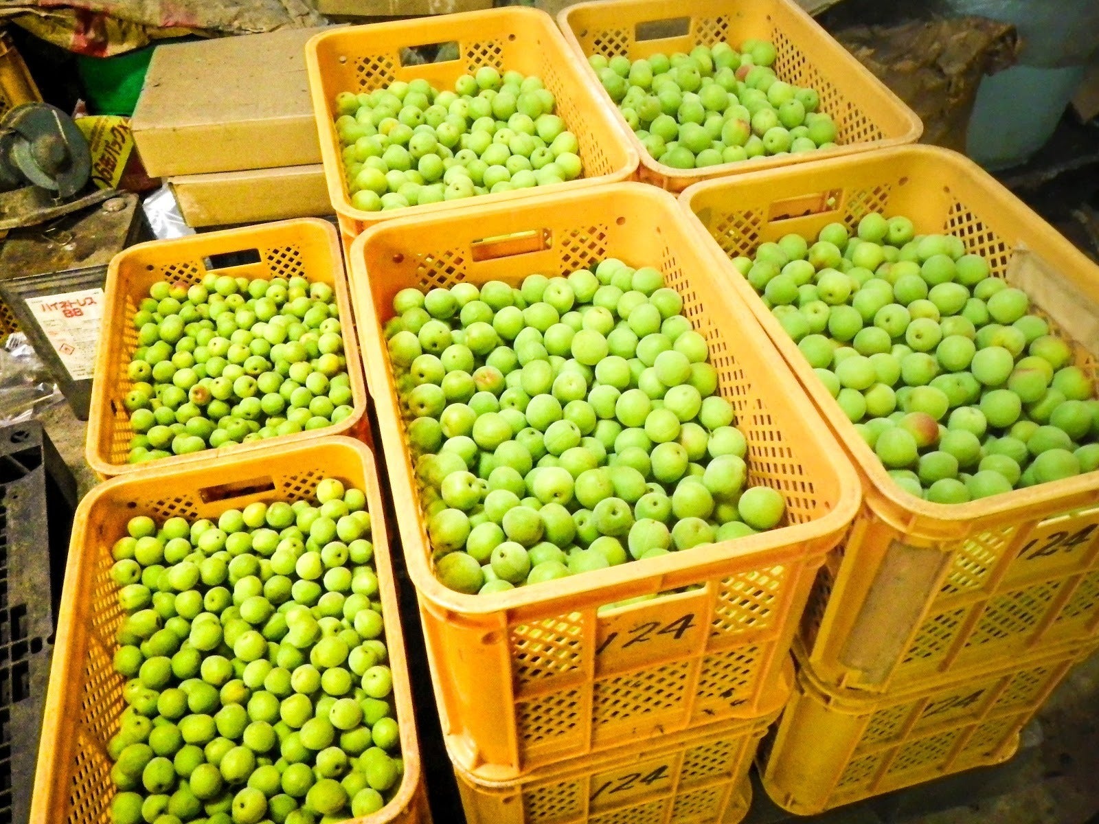 梅仕事は早ければ5月の中旬から始められます。このときに出回るのは小梅品種。まだかたいのでカリカリ梅に最適です。6月の中旬には、大粒品種もだんだん梅の価格が下がっていく旬の時期を迎え、梅仕事もピークの忙しさを迎えます。梅は収穫後も熟すのが早いですから、青梅が青梅であるうちに、完熟梅が痛まぬうちに、手早くそれぞれの加工を施してあげなくてはいけません。