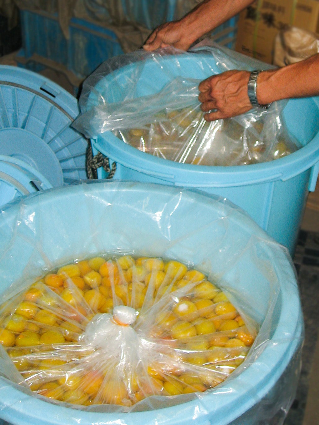 こうして手間ひまかけられて、梅干しは何年でももつ最強の保存食になります。