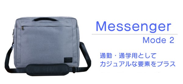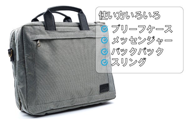 A:ブリーフケース、メッセンジャー、バックパック、スリングの4スタイルです。