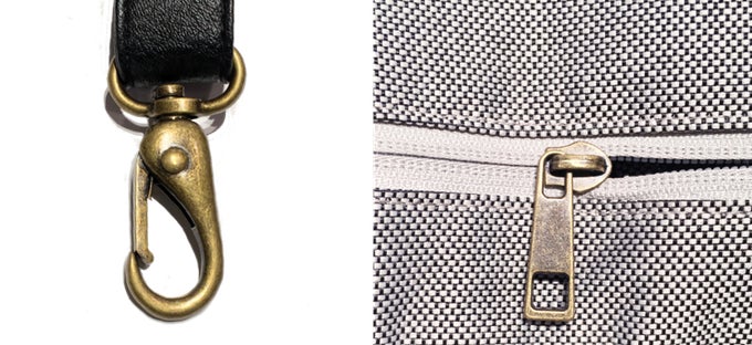 外装は耐久性のある黒とグレーのナイロン素材で、清潔な見た目を保ち、